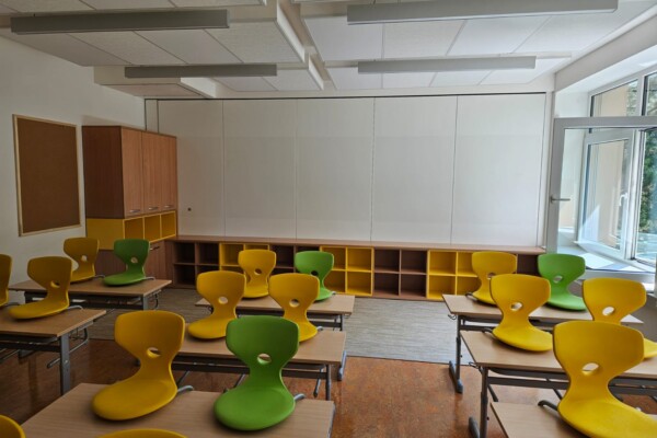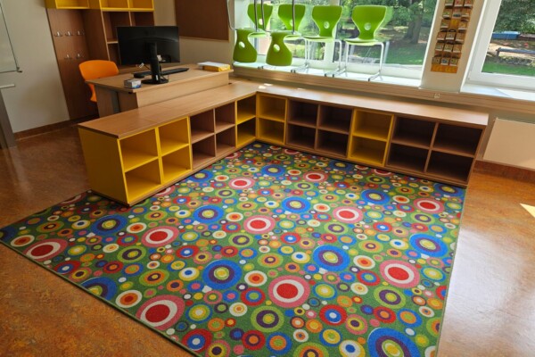 Vybavení základní školy a školky v Modleticích – důraz na funkčnost i kreativitu.